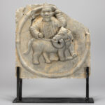 NOORD-OOST CHINA – HAN – DYNASTIE (206 voor – 220 na Christus) grafornament met de voorstelling van een Chinese olifantentemmer – 37 x 37 – gemonteerd prov : Daroun Gallery