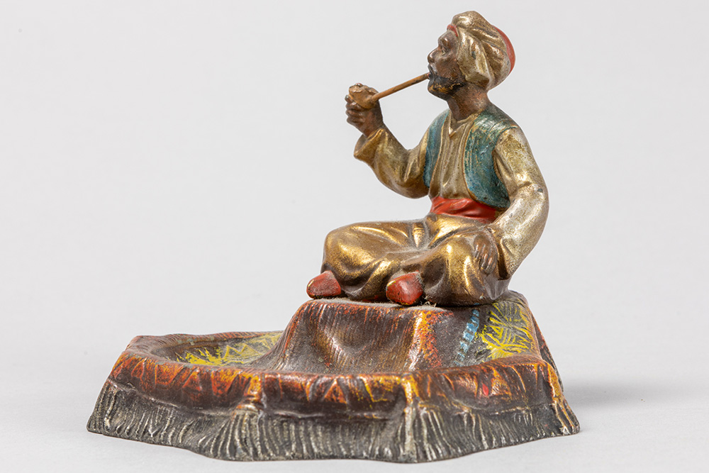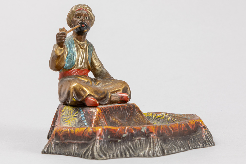 antique Viennese orientalist style “Arabic smoker” sculpture in cold-painted metal