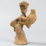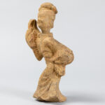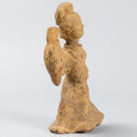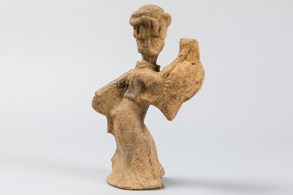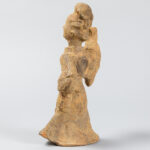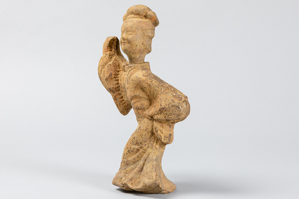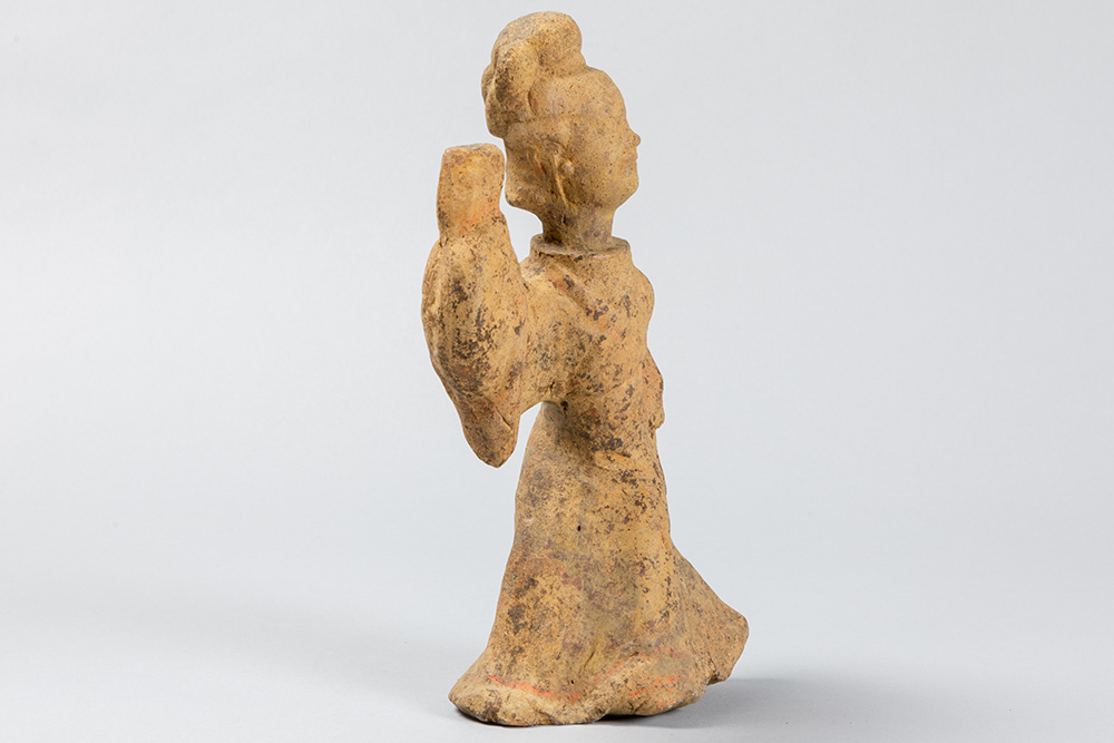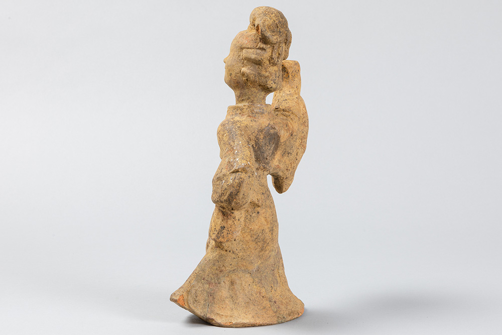 CHINA – HAN – DYNASTIE (206 voor – 220 na Christus) grafvondst in aardewerk : “Hoofse danseres” – hoogte : 26,5 cm met certificaat