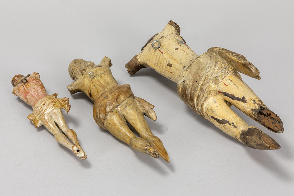 Lot van drie antieke Christuscorpussen in hout – hoogtes : 24,5 tot 39,5 cm