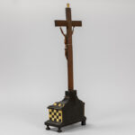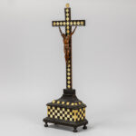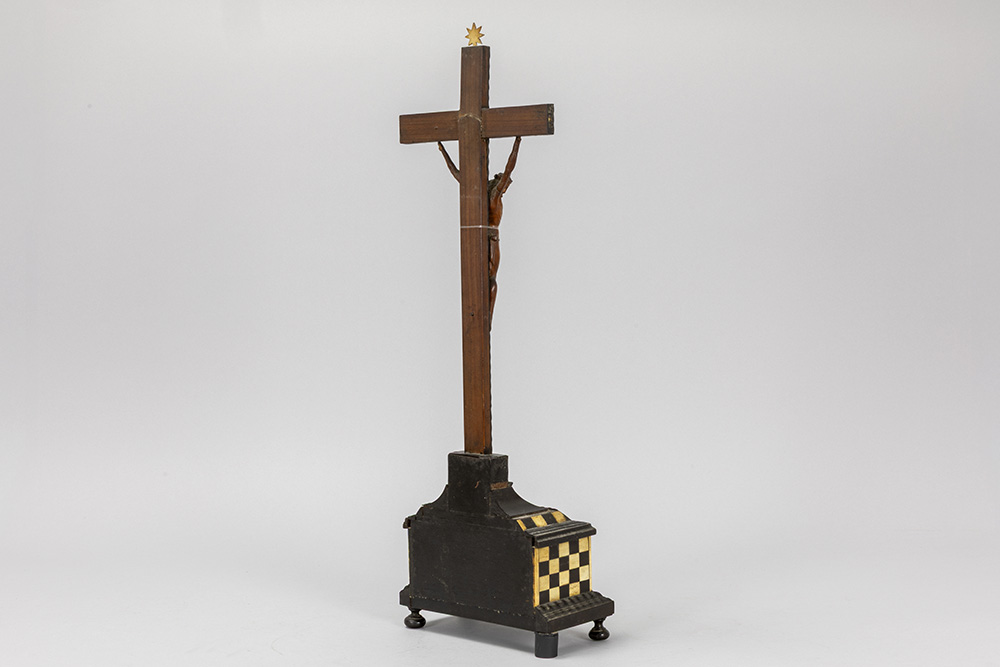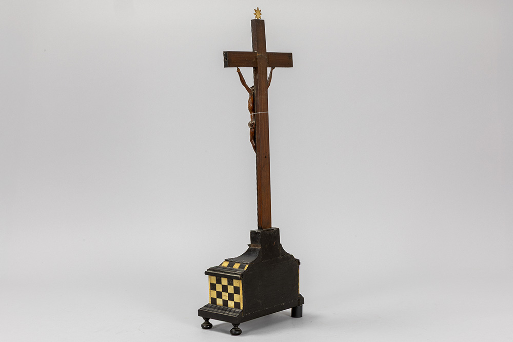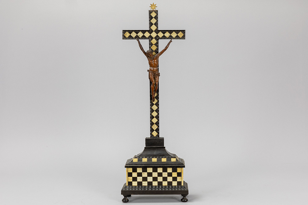 antique, presumably 17th Cent. Christ corpus in wood on a crucifix with inlaid bone
