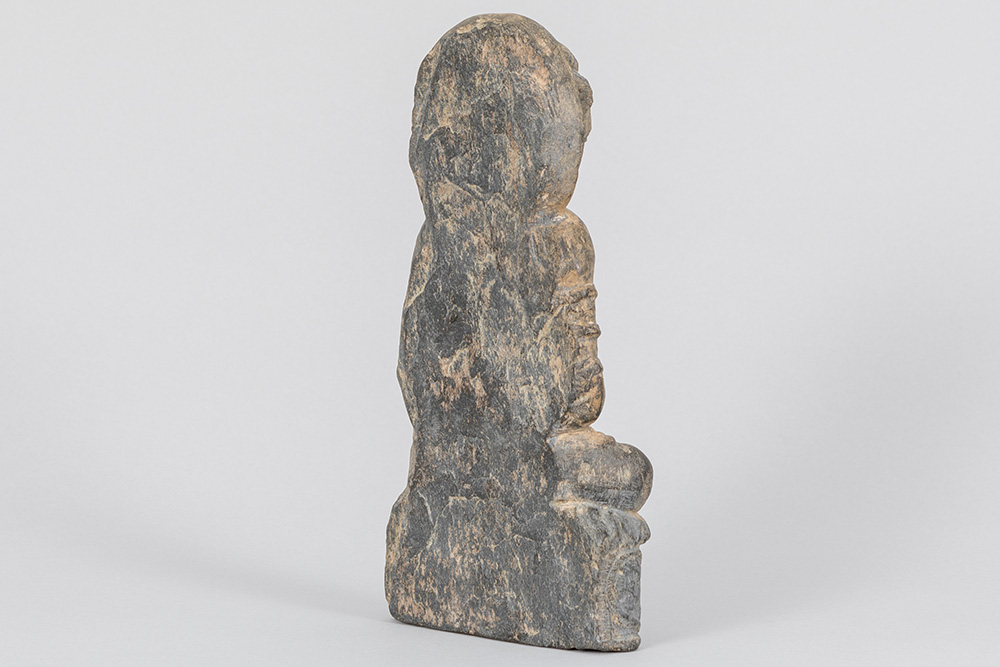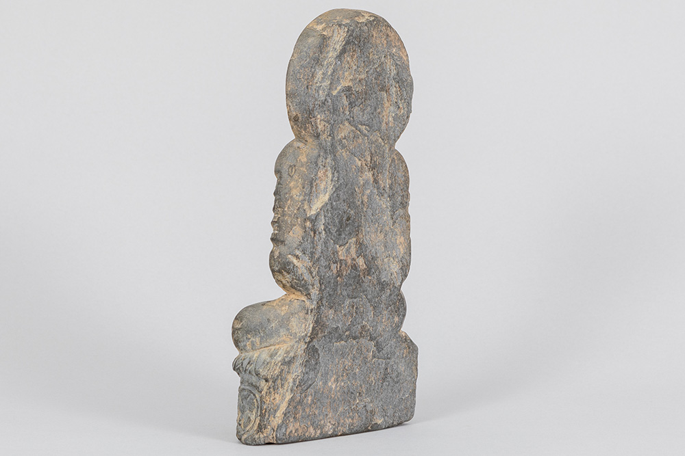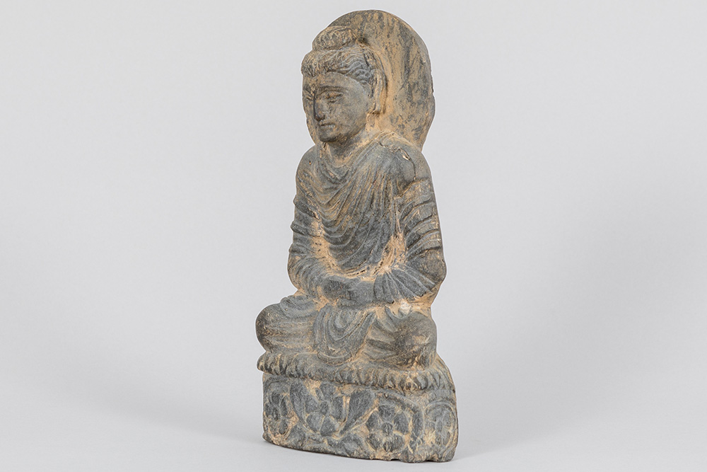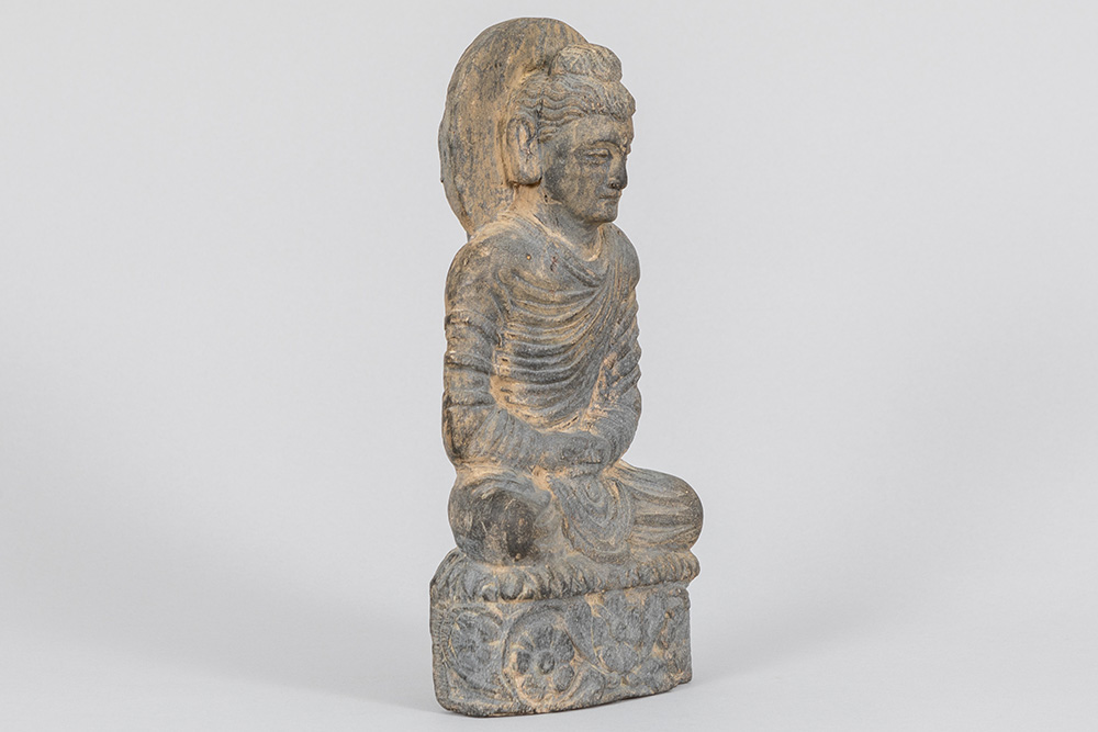 GANDHARA – 6° EEUW BC tot 11° EEUW sculptuur in schist : “Zittende Boeddha” – hoogte : 23 cm