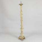 Grote antieke kerkkandelaar in hout met zilverpatine – hoogte : 157 cm