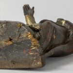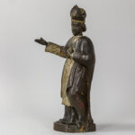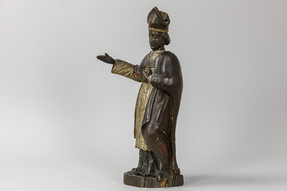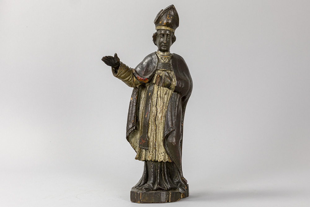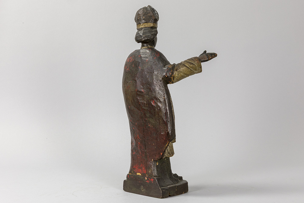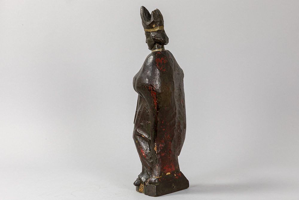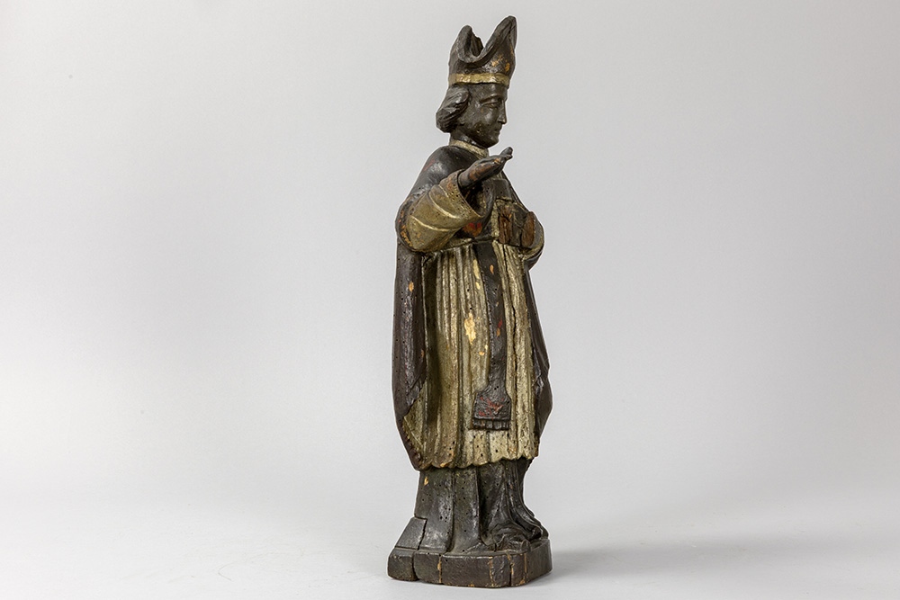Antieke sculptuur in gepolychromeerd hout : “Bisschop” – hoogte : 49 cm