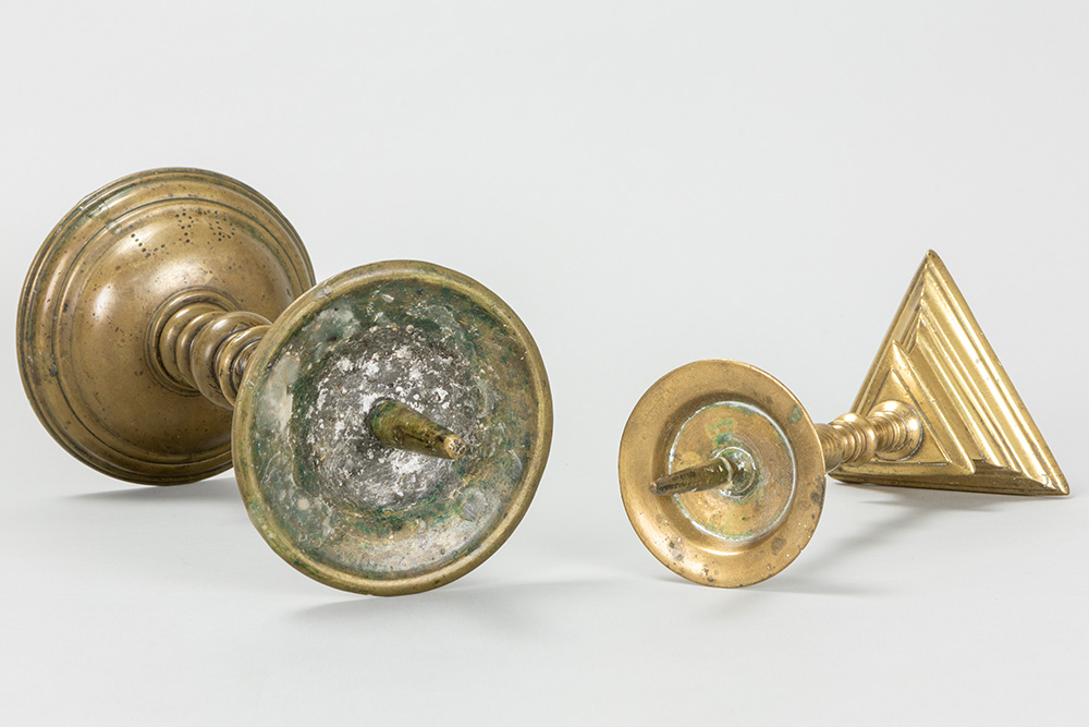 two 17th Cent. candlesticks in brass