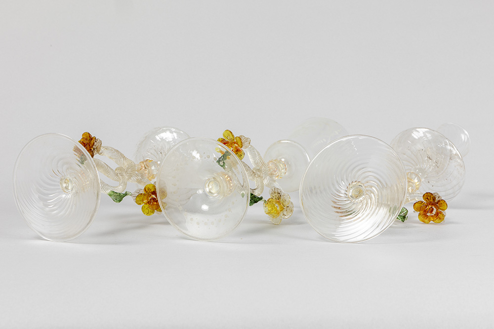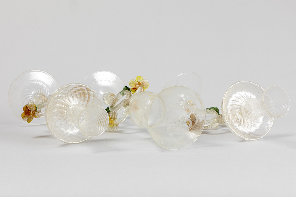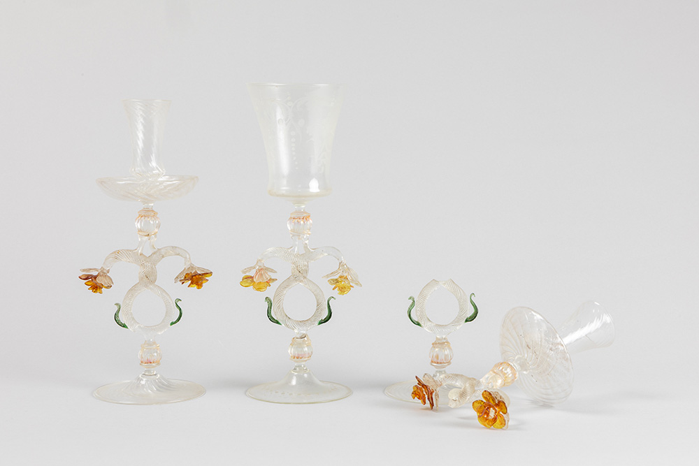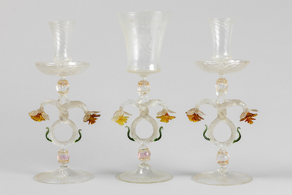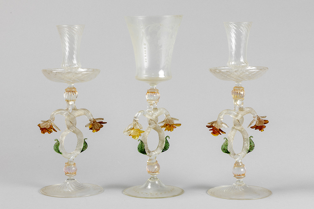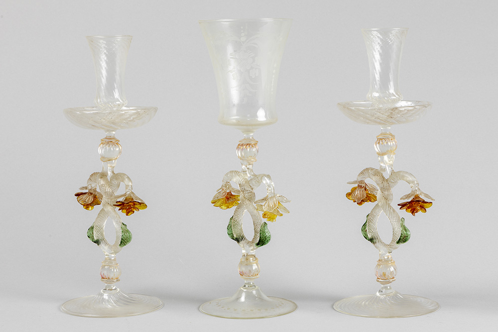 ’antique’ Venetian set in Murano glass with a pair of candlesticks and a candlestick