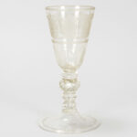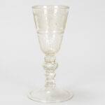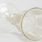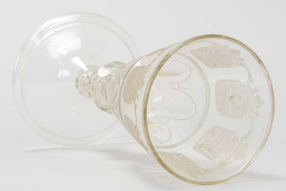 Zeldzaam achttiende eeuws bekerglas (zgn bokaal) in kleurloos kristalglas met de geciseleerde voorstelling van de wapenschilden van de Zeven Provinciën – hoogte : 24 cm