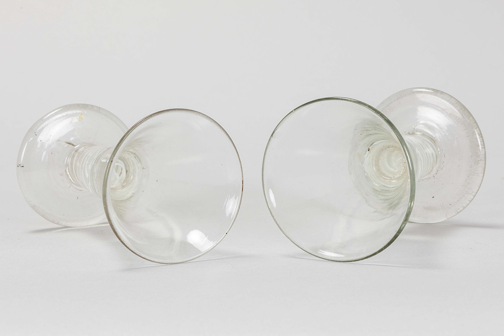 two 18th Cent. Dutch shott glasses (“oorlam”) in glass with typical base