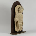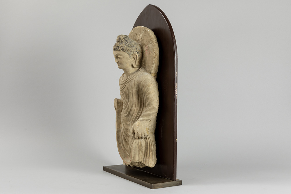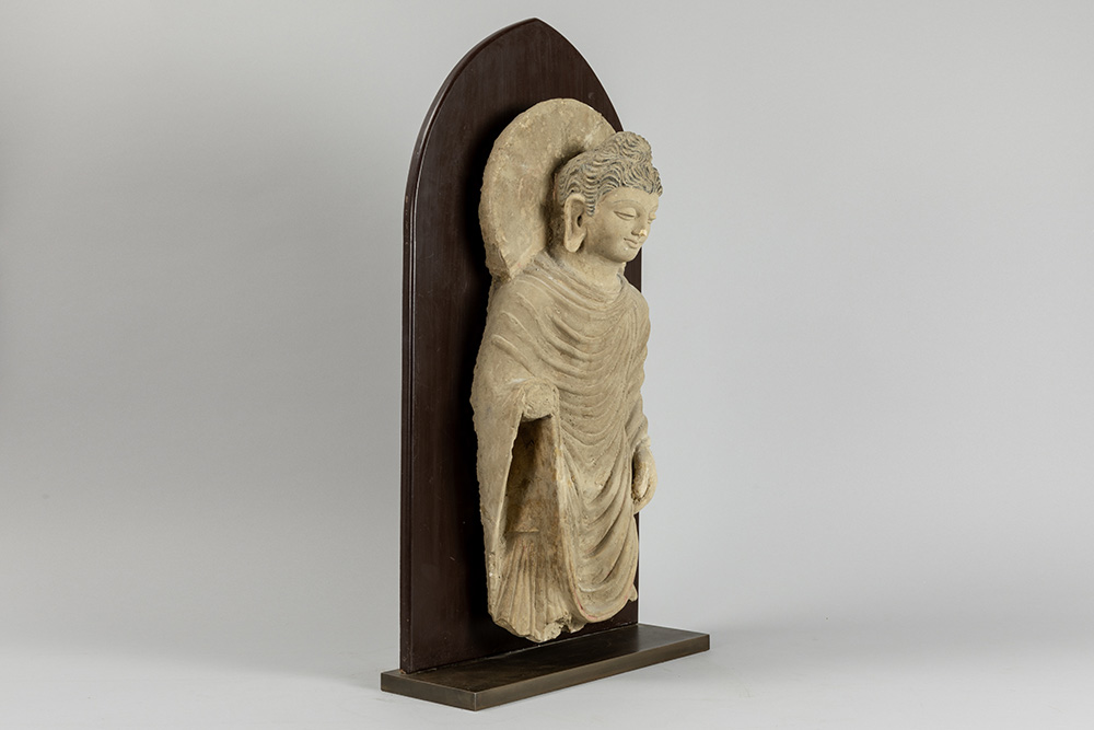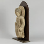 OUDE GANDHARA – REGIO – 1° tot 3° EEUW sculptuur in stuc met restanten van de originele polychromie met de voorstelling van een staande Boeddha, typisch voor de Oud Grieks-boeddhistische kunst – hoogte : 60 cm uit een verzameling in het Groothertogdom Luxemburg