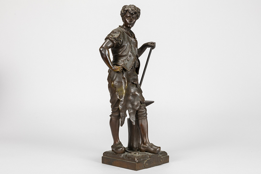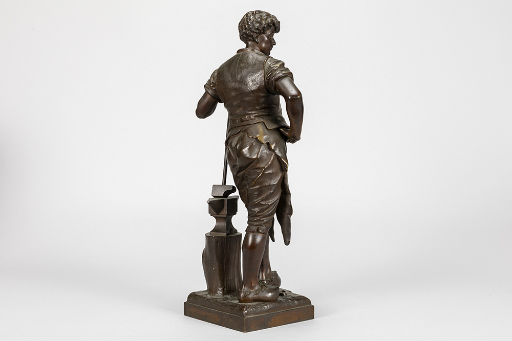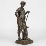 BOURET EUTROPE (1833 – 1906) sculptuur in brons : “Le Travail” – hoogte : 42,5 cm getekend
