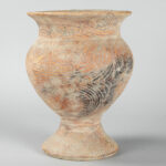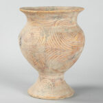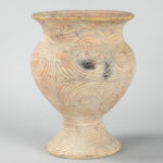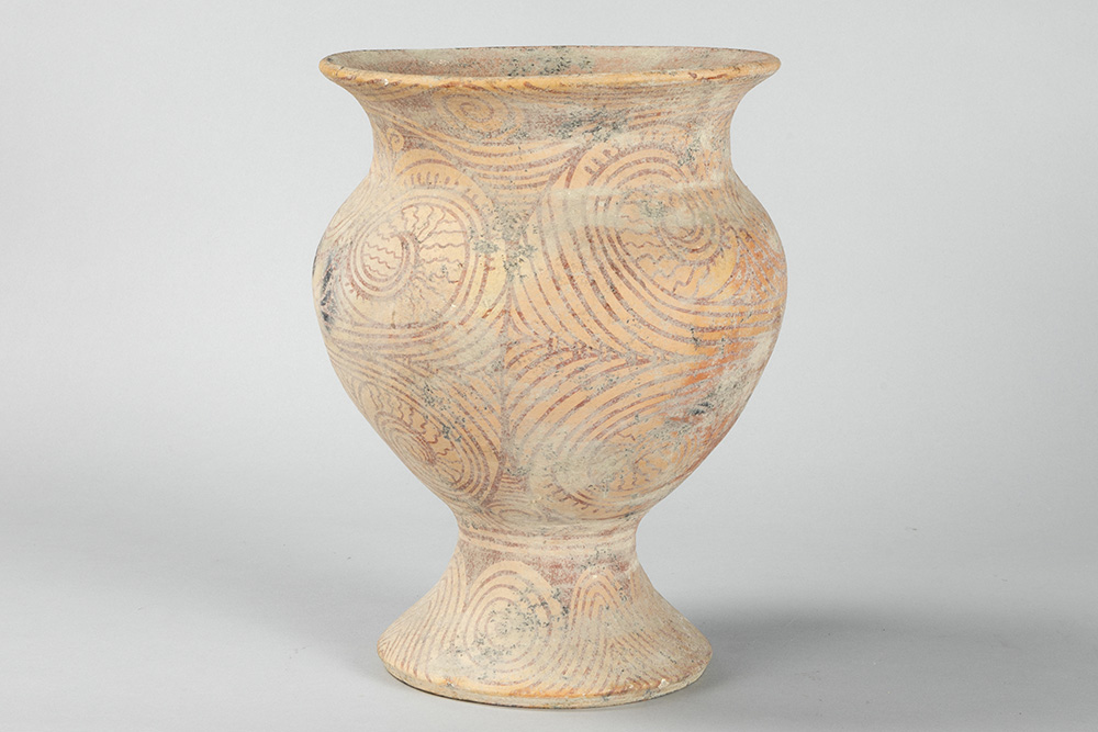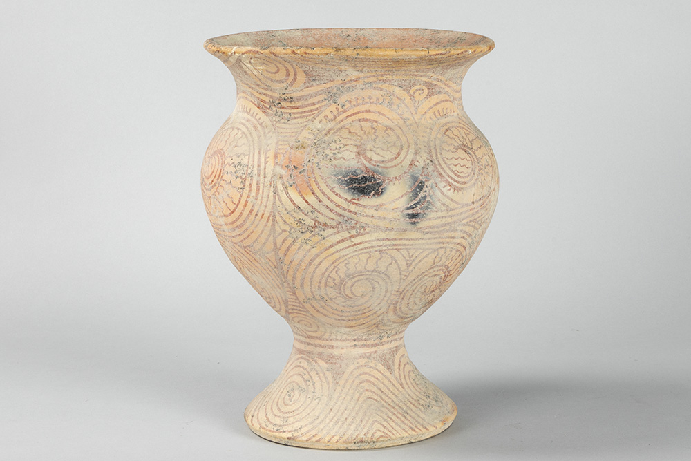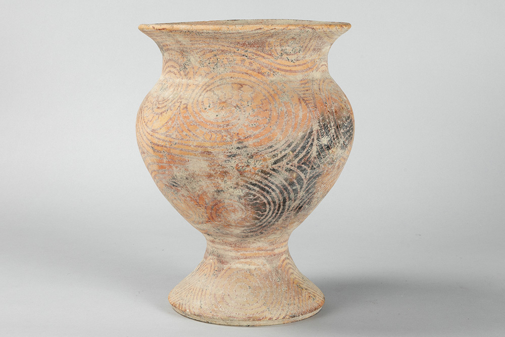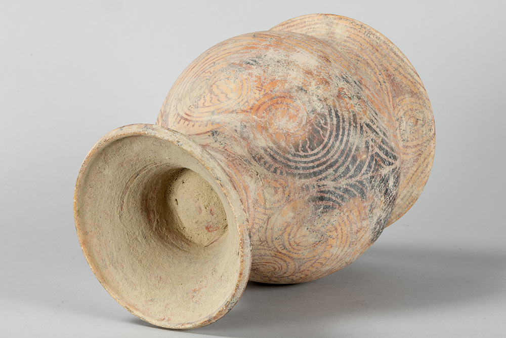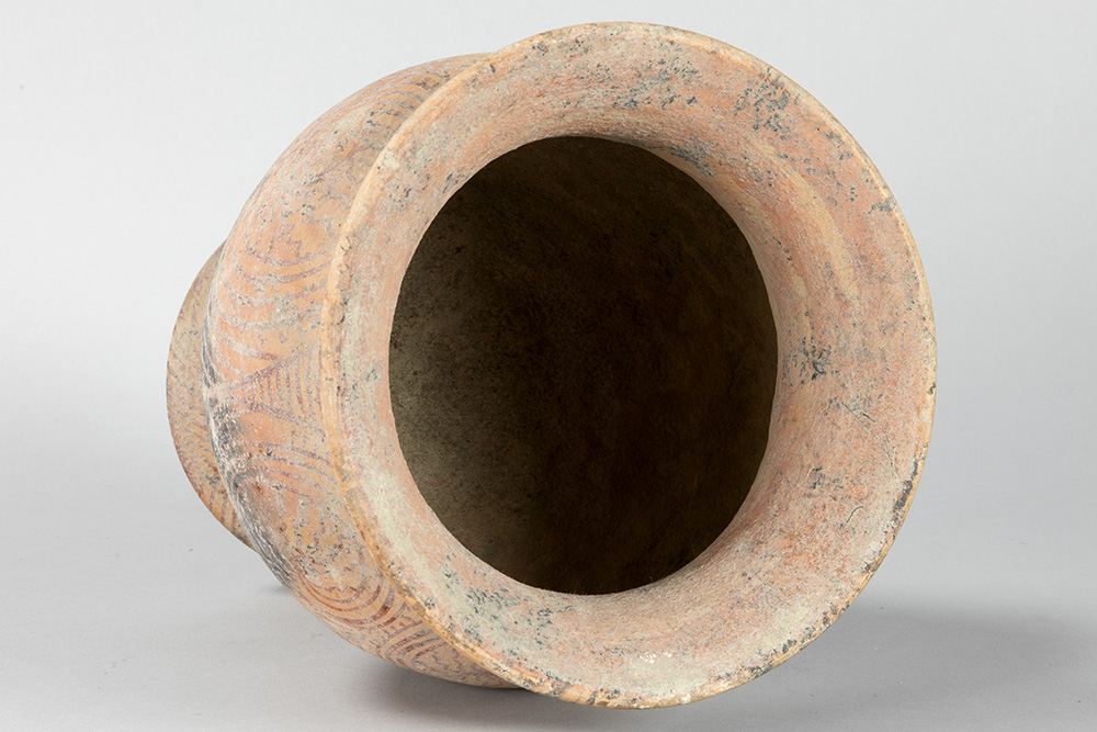 THAILAND – BAN CHIANG PERIODE (5000 – 3000 BC) recipiënt in aardewerk met typische beschilderingen – hoogte : 30 cm