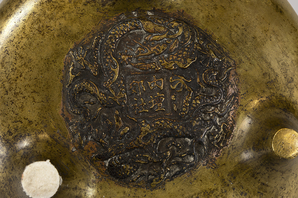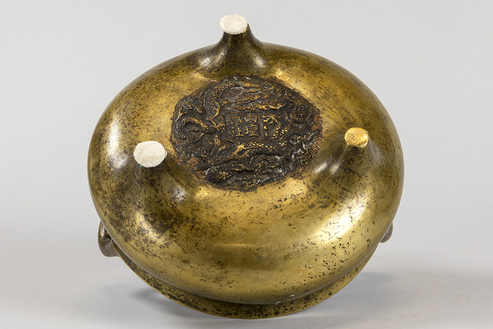 Chinese Qing period bronze incense burner with a special mark with dragons