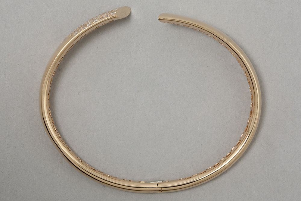 Prachtig bracelet met een open esclavemodel in roos goud (18 karaat) met een sierstuk bezet met ca 1,50 karaat blauwwitte (D/E/F) kwaliteitsbriljant (Vvs/Vs) – 16,2 gram