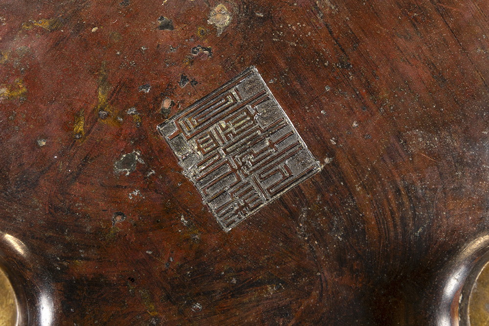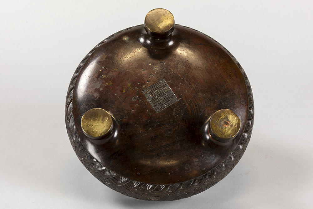 marked Chinese Qing period bronze incense burner with a dragons’ decor
