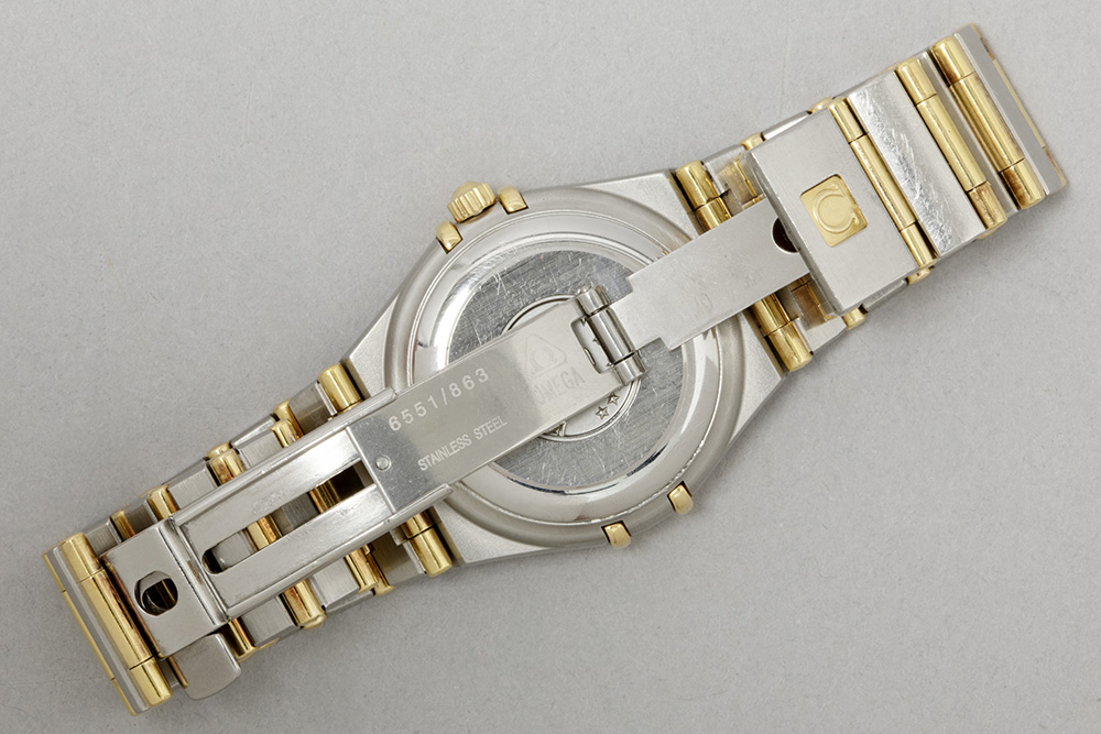 completely original Omega marked automatic “Constellation” ladies’ wristwatch in steel and yellow gold (18 carat)