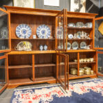 Antieke Engels-koloniale bibliotheek in een exotische houtsoort met onder- en bovenaan telkens vier vitrinedeuren – 214 x 283 x 44 cm één venster gebarsten