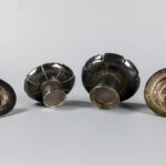Lot van twee Sino-Tibetaanse theetashouders met bijhorend deksel in zilver, telkens met een repoussédecor – gewicht : 413 gram