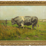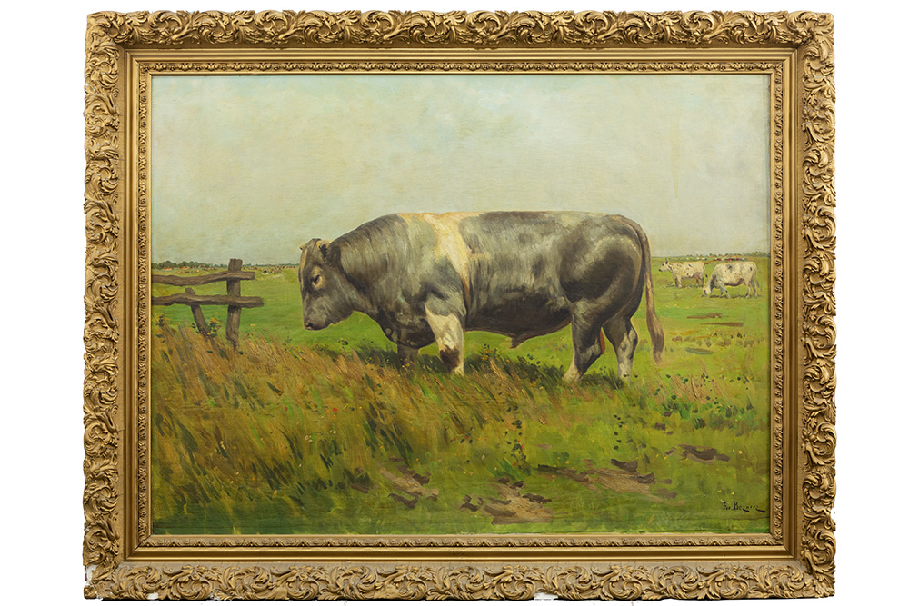 BERNIER GÉO (1862 – 1918) olieverfschilderij op doek : “Stier in een weide” – 100 x 135 getekend