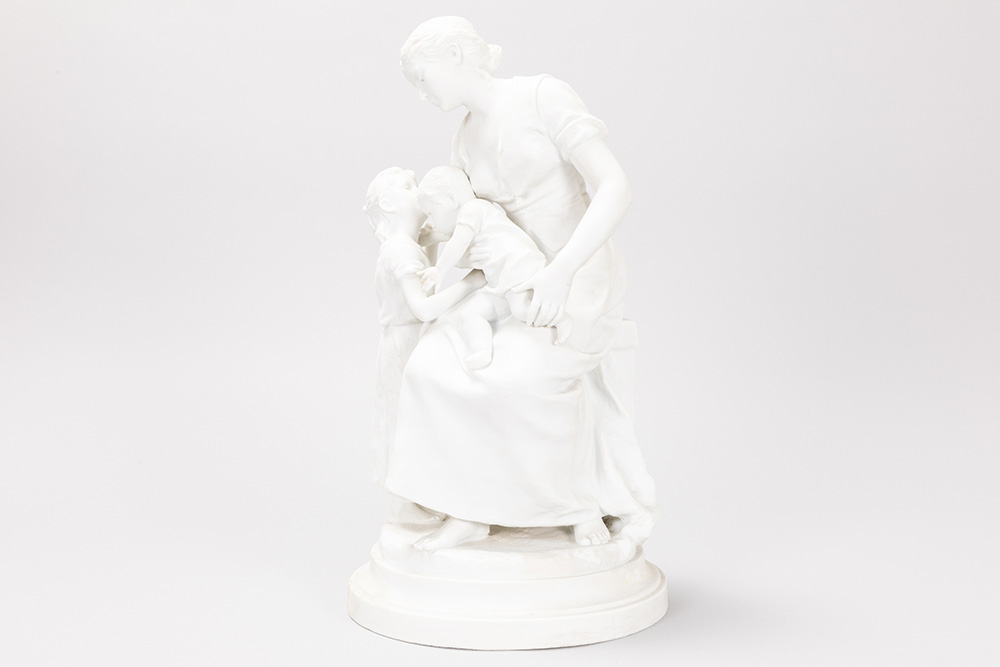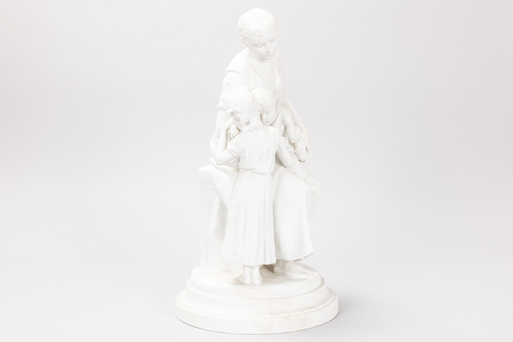 Antieke sculptuur in biscuit : “Moeder en kinderen” – hoogte : 46 cm