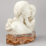 GORI FORTUNATO (1886 – 1925) antieke dubbelsculptuur in Carrara-marmer : “Moeder en kind” – hoogte en breedte : 40 en 50 cm – op de originele sokkel in zeer mooie marmer – ca 1900/10 getekend