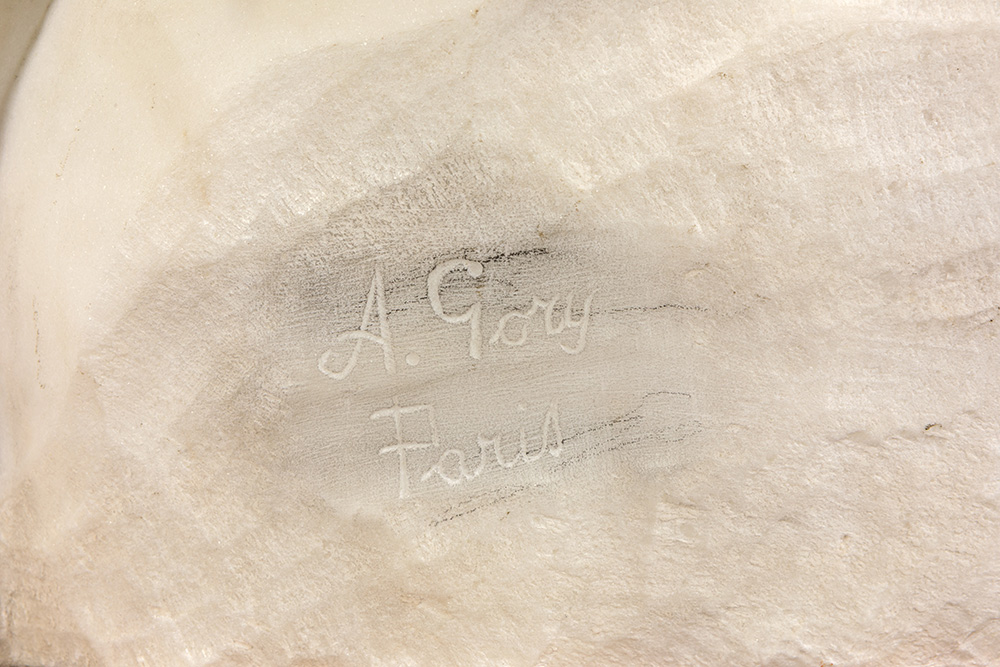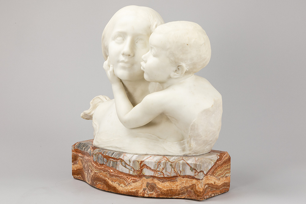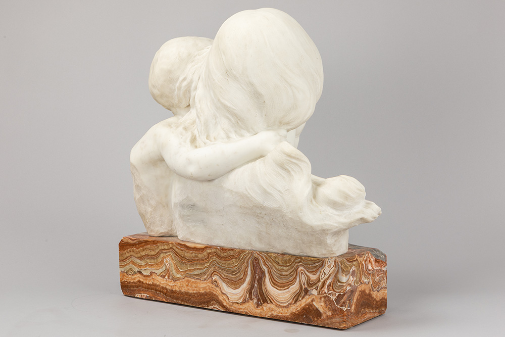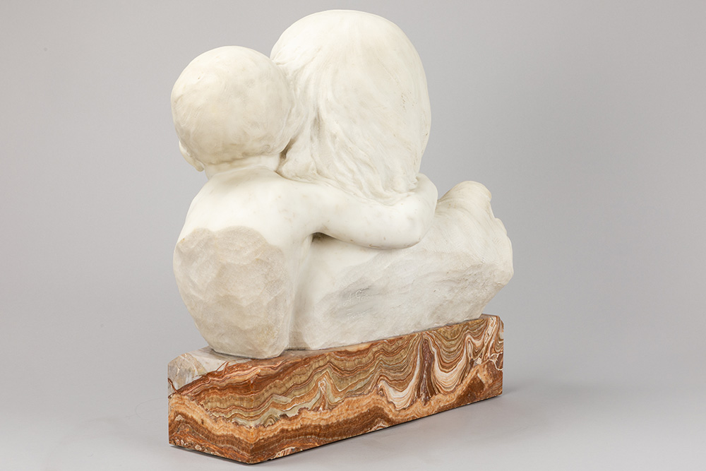 antique Italian “Mother and Child” sculpture in Carrara marble – on its original base in beautiful marble – signed Fortunato Gori