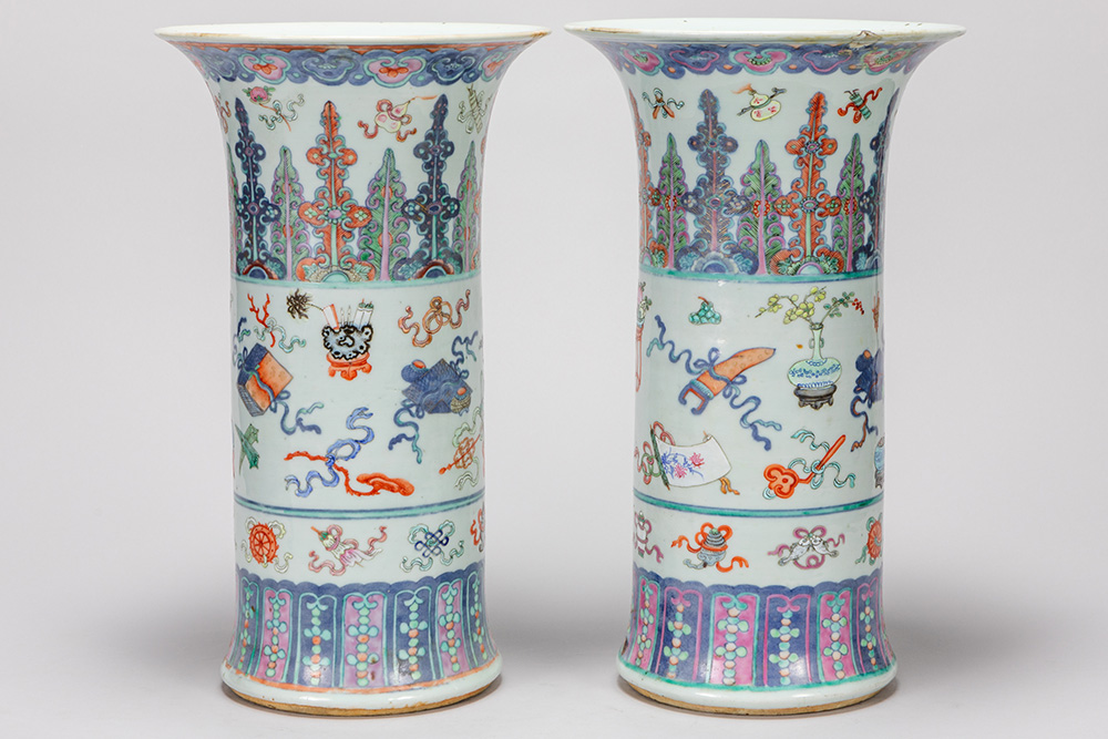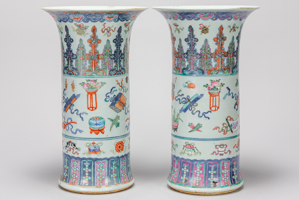 pair of 19th Cent. Chinese vases in porcelain with a polychrome decor Brought from China by the heirs’ great-grandfather after he had worked there as an engineer.