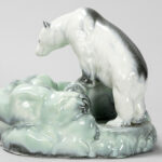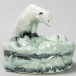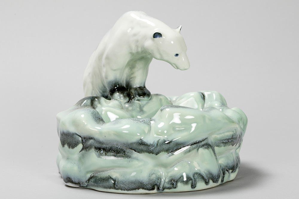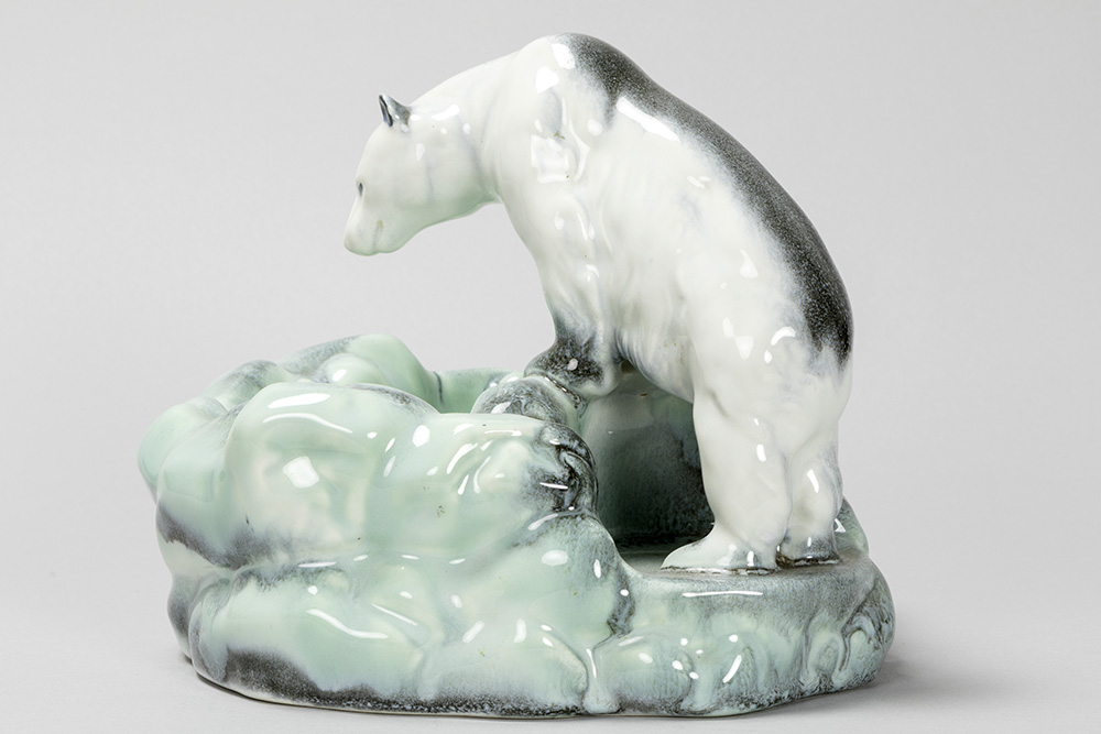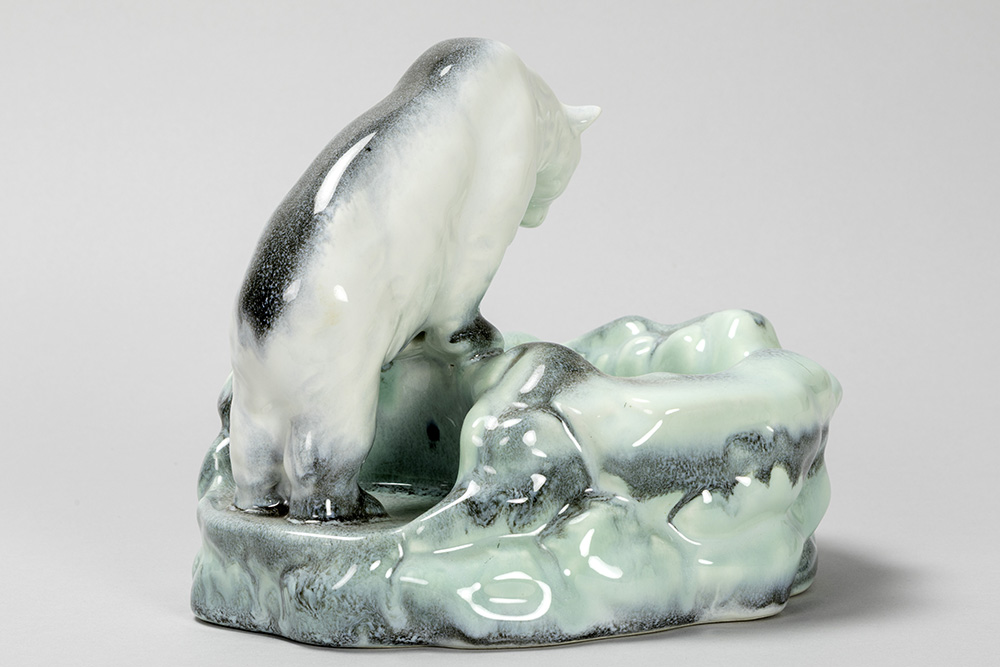 DITMAR-URBACH vide-poche met ijsbeer in faience, gemerkt Tsjechoslowakije – 17 x 22 x 22 cm