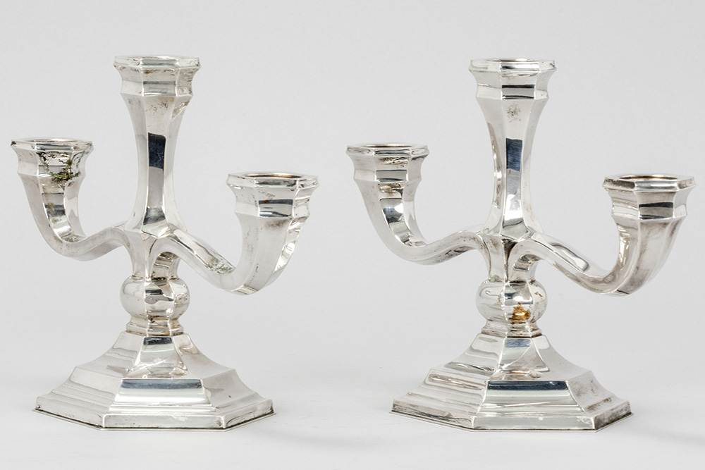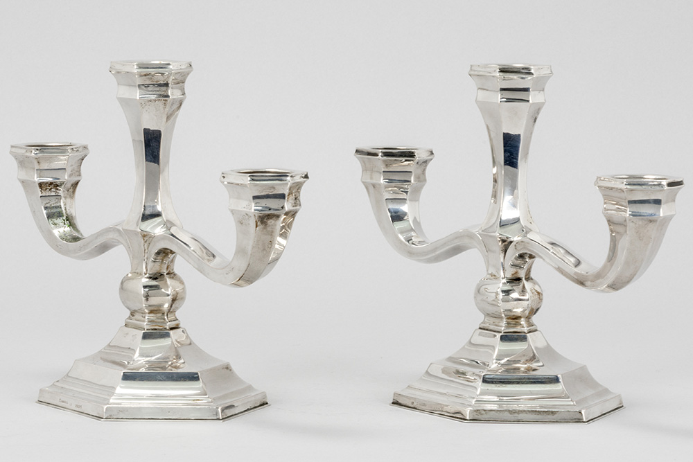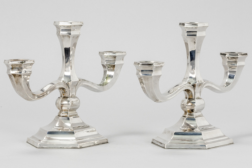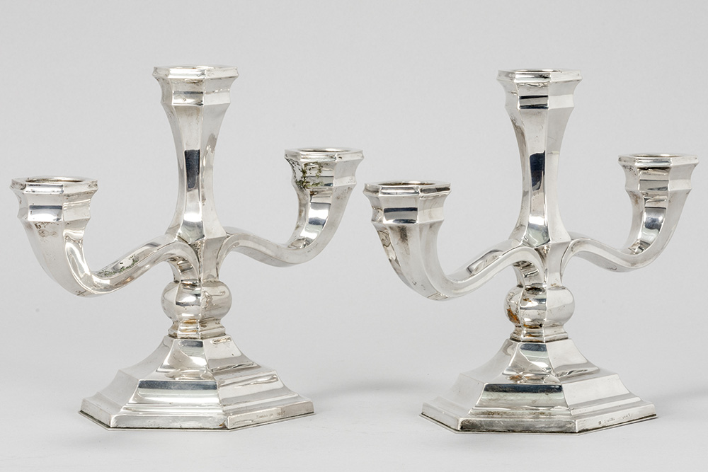 pair of presumably Belgian Art Deco candelabra in “835” marked silver