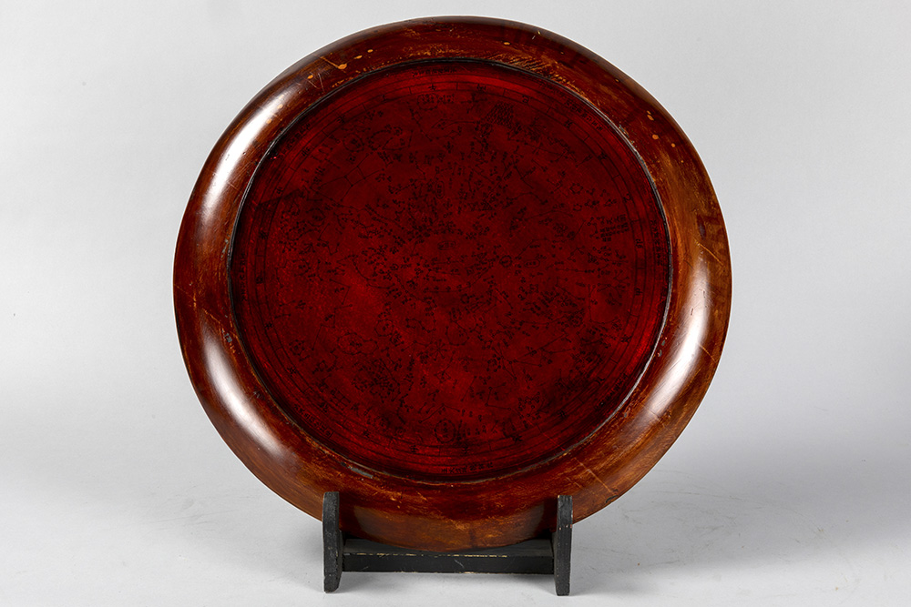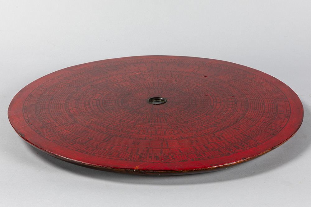 Feng Shui kompas, ook LuoPan genaamd, in gelakt hout met op de voor- en achterzijde teksten en symbolen – diameter : 51,5 cm