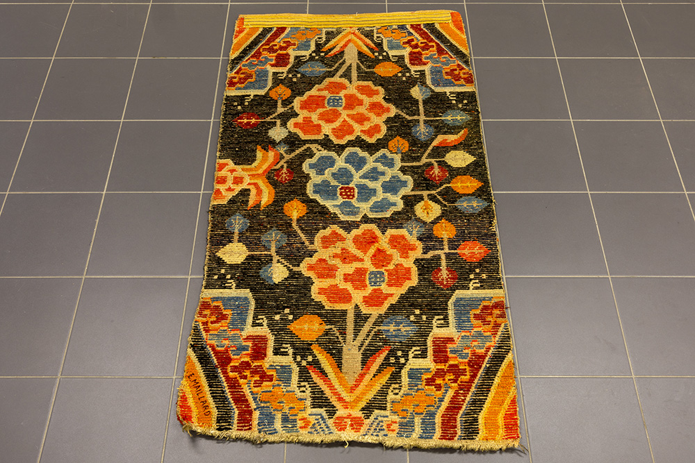 antique Tibetan rug in wool (on wool) with a polychrome stylized floral decor