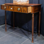 Antieke Engelse consoletafel in acajou met lade en gecanneleerde poten – 92 x 106 x 50 cm