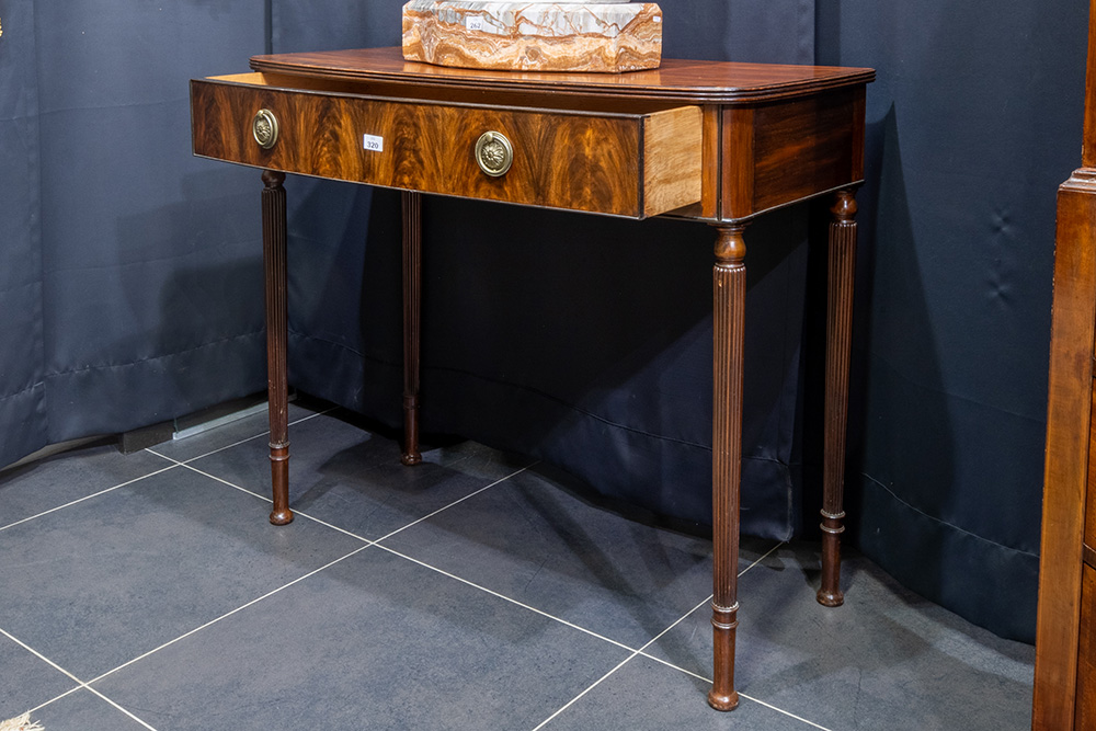 antique English console-table in mahogany with drawer and fluted legs