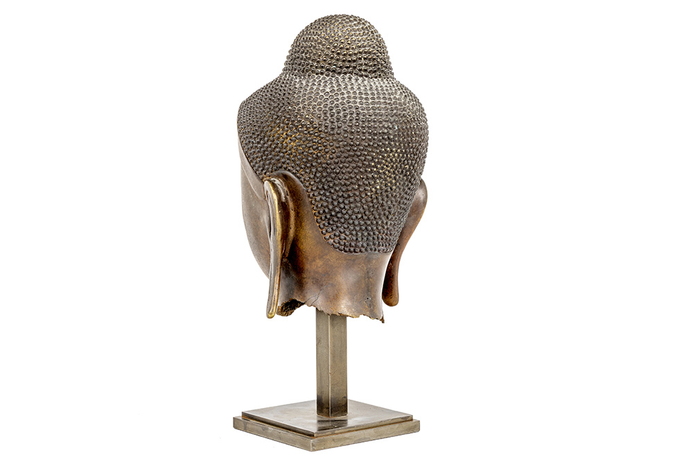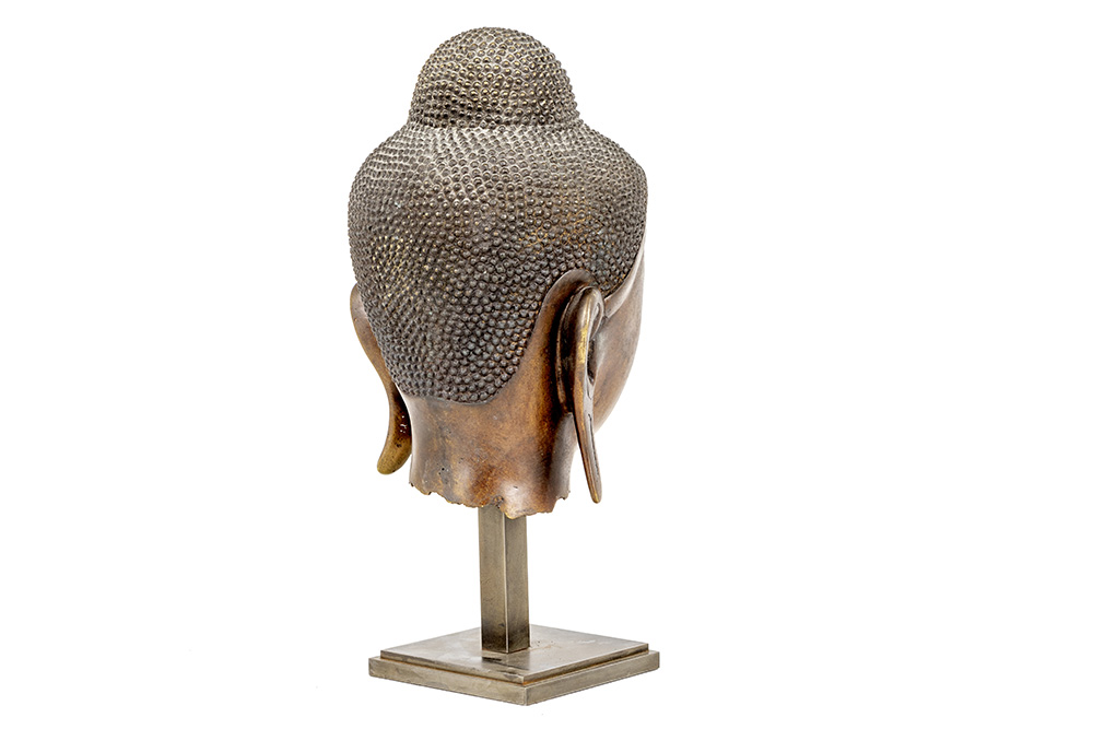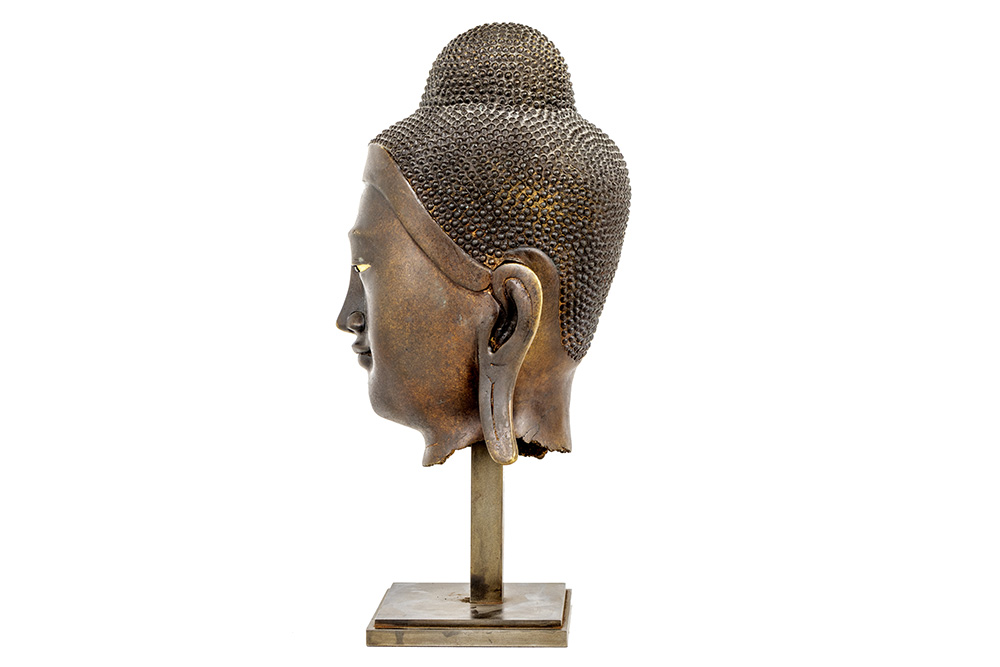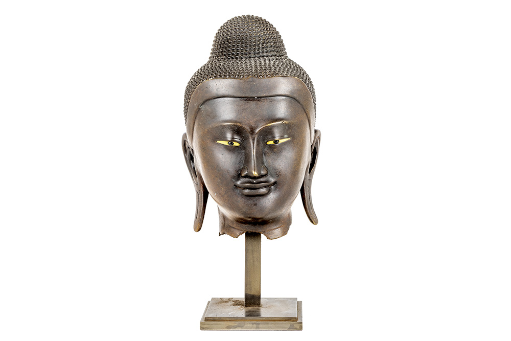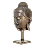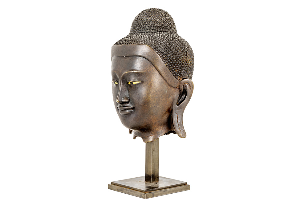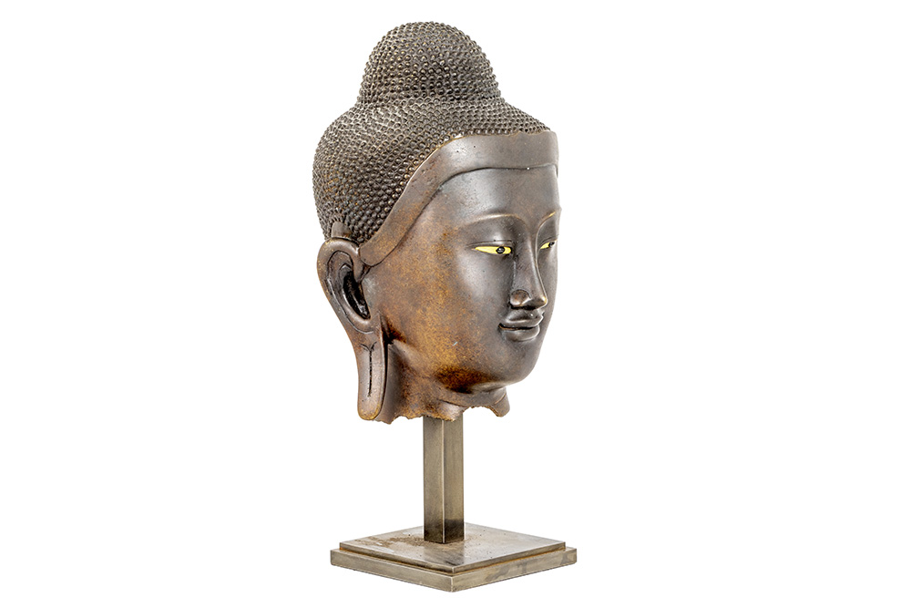 nice19th Cent. Burmese Mandalay period “Buddha head” sculpture in bronze with inlaid eyes