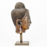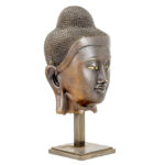 BIRMA – MANDALAY PERIODE – 19° EEUW fraaie sculptuur in brons met ingelegde ogen : “Hoofd van Boeddha” – hoogte : 30 cm – gemonteerd prov : collectie uit het Groothertogdom Luxemburg