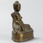 Kleine allicht achttiende eeuwse Birmaanse sculptuur in brons : “Zittende Boeddha” – hoogte : 23 cm