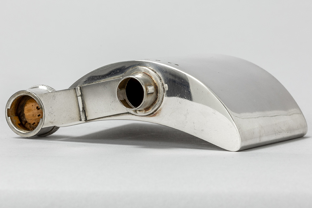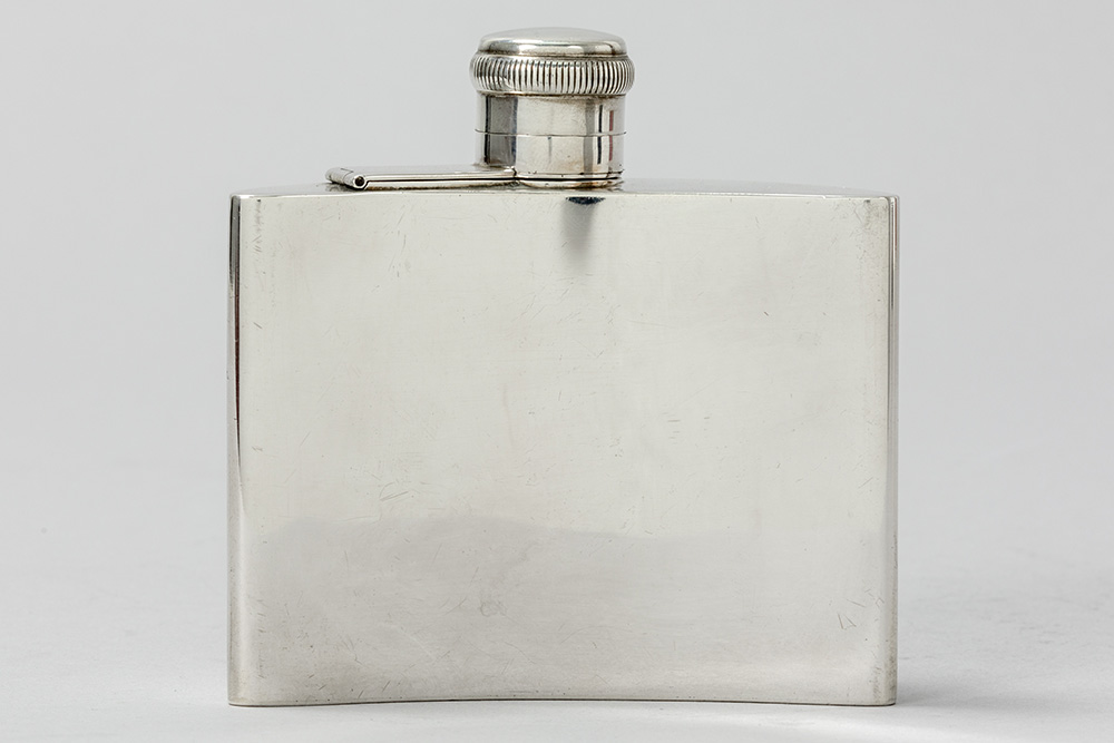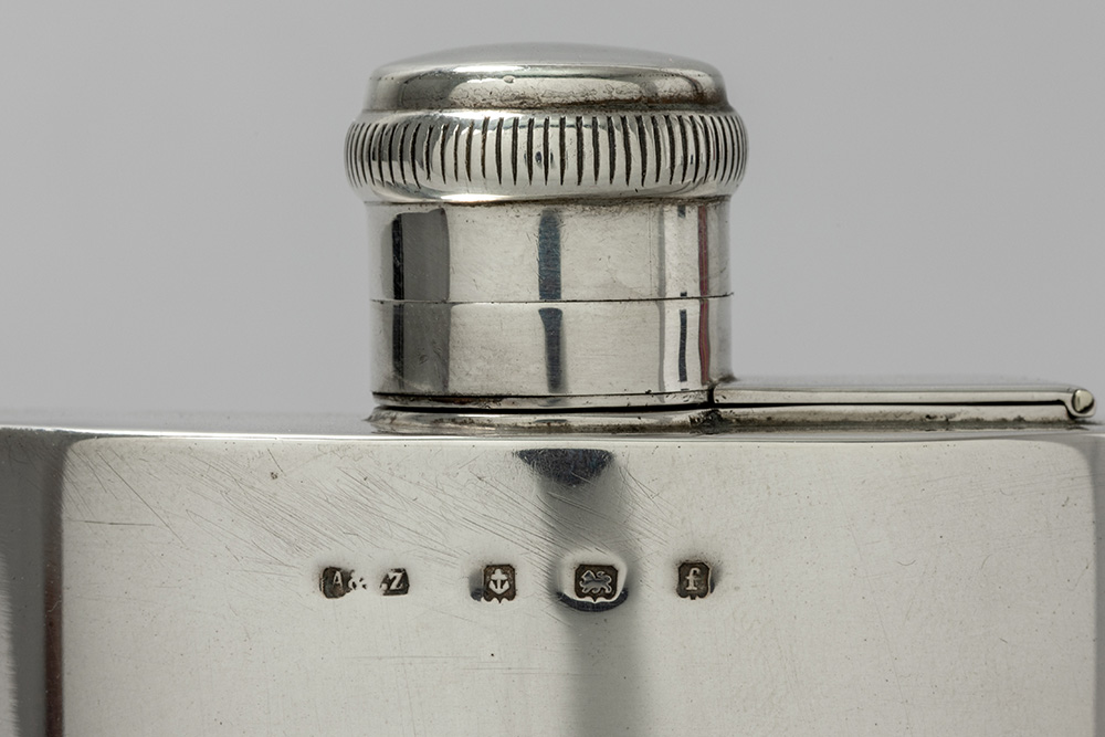 ZIMMERMAN A & J antieke zakfles in massief zilver, gemerkt ‘925 – Birmingham 1905’ – hoogte : 9,5 cm – gewicht : 156 gram getekend