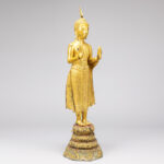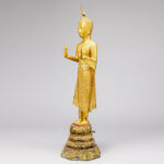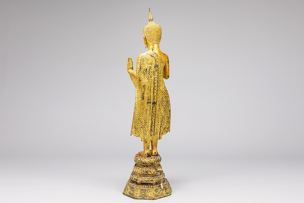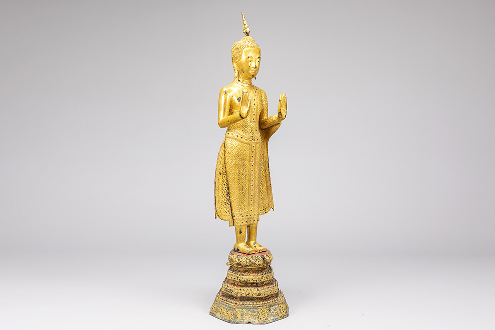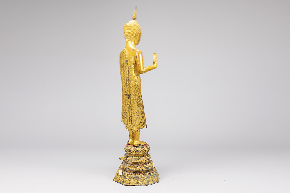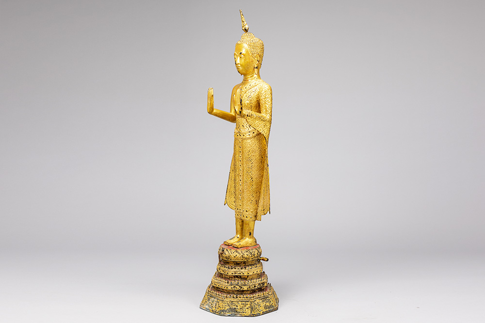 early 19th Cent. Siamese Rattanakosin period “Blessing Buddha” sculpture on its original base in gilded bronze