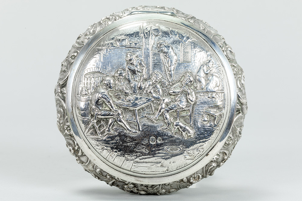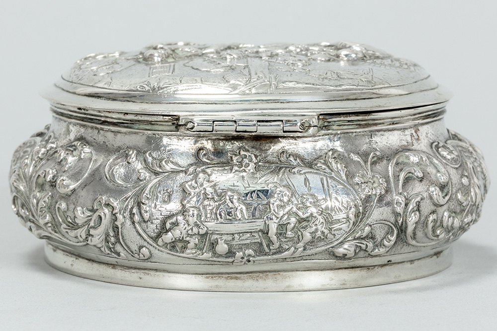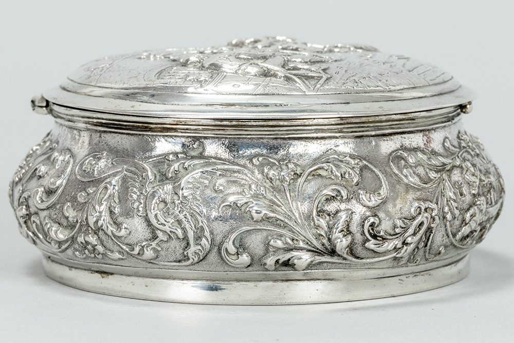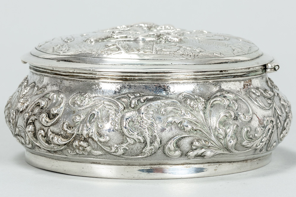 round Dutch sweet’s box in “Hollandia Zilversmederij” marked silver