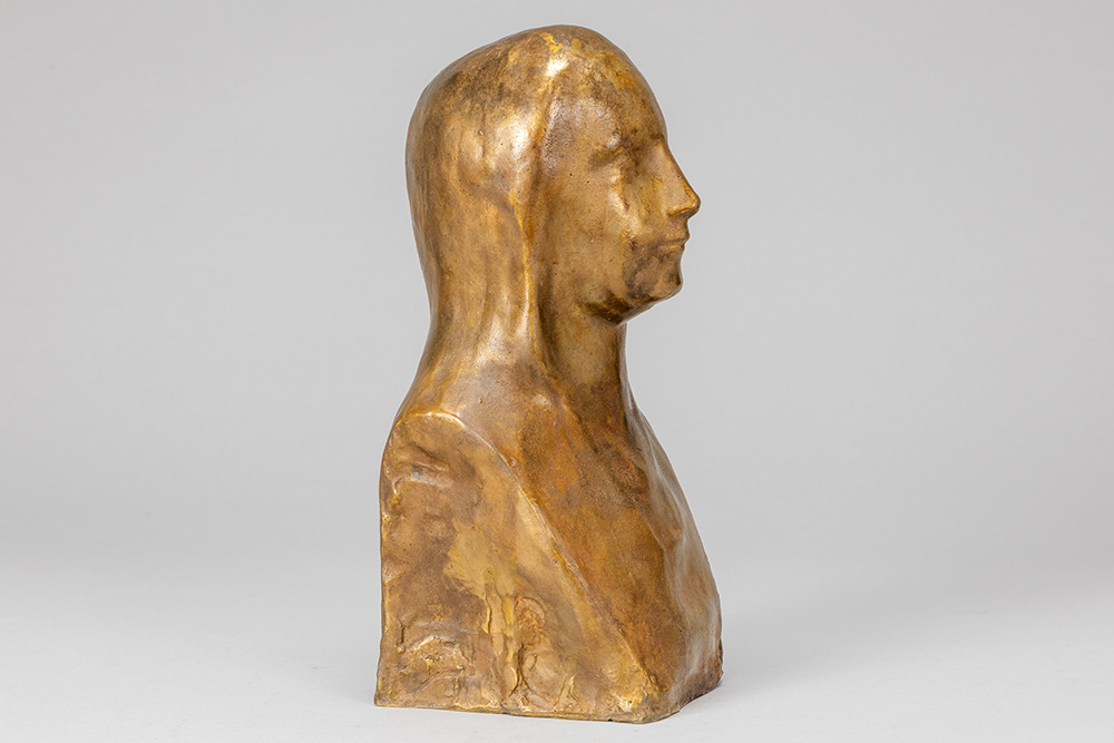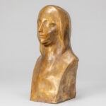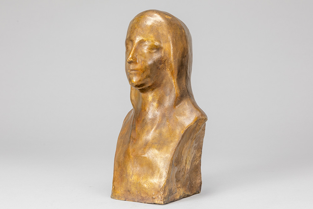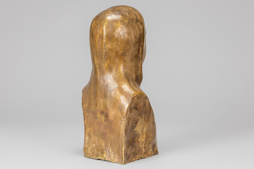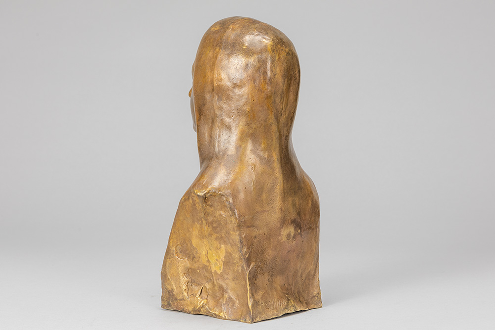 MINNE GEORGE (1866 – 1941) sculptuur in brons met lichtbruine patine met een meisjesbuste : “Sainte Thérèse de l’Enfant Jésus” – hoogte : 28 cm getekend postume gieting van originele gips dd 1923