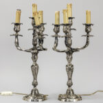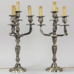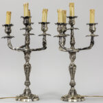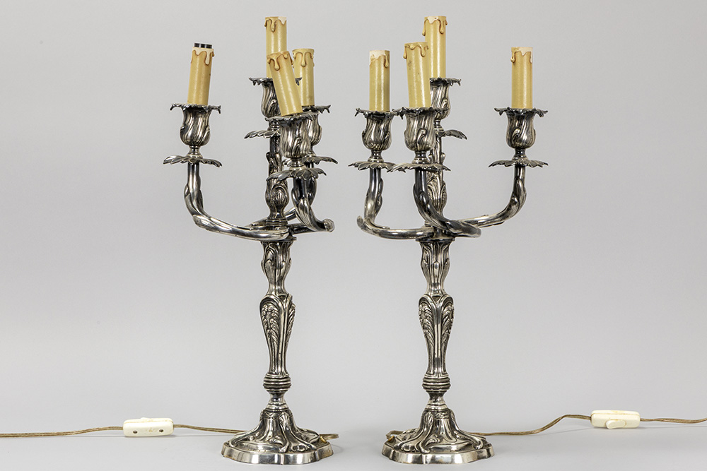 pair of Louis XV style candelabras in silverplated bronze, made into lamps