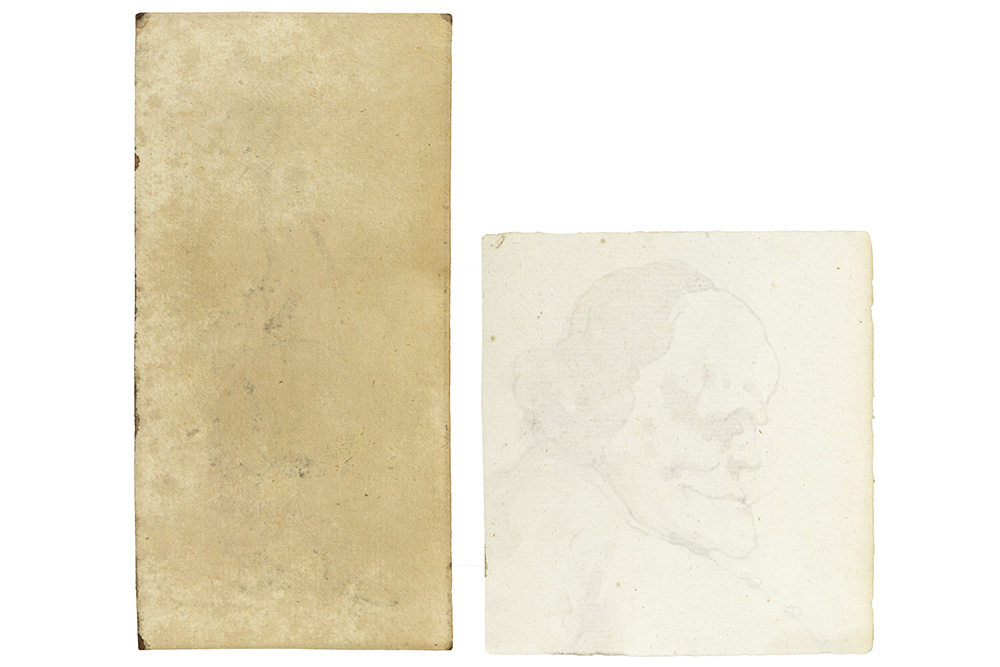 Lot van twee kleine antieke tekeningen – 8,7 x 8 en 13,2 x 6,3