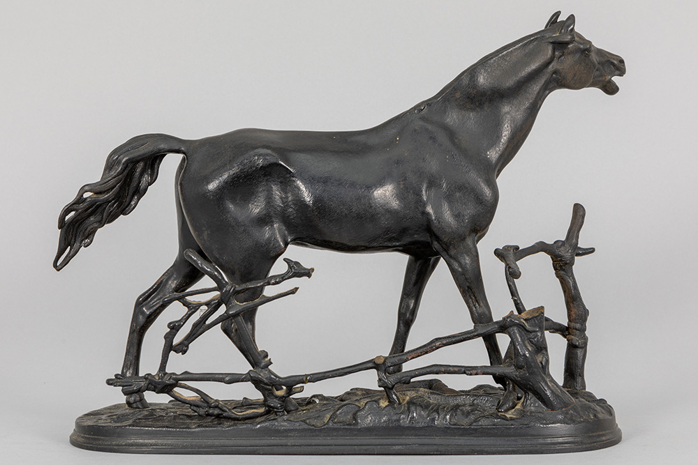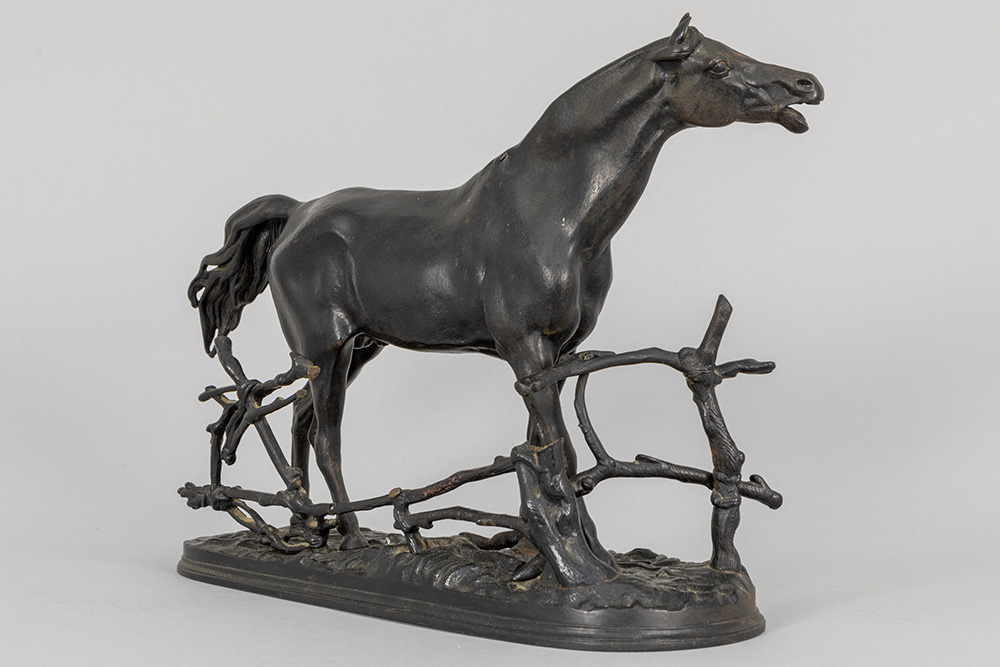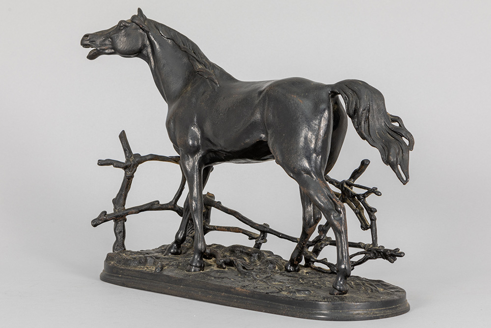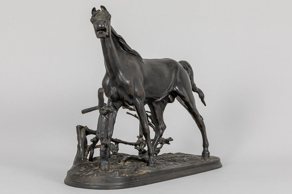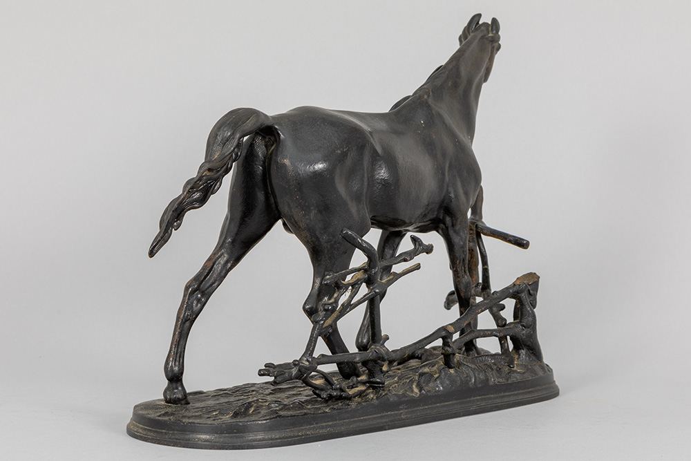 MÊNE PIERRE JULES (1810-1879) Russische sculptuur in gietijzer met donkere patine naar het werk van Mène getiteld “Djinn ou le cheval à la barrière” – 28,5 x 37 met merk van de Russische gieterij Kasli