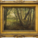 BRUNIN LEON (1861 – 1949) olieverfschilderij op doek : “Boszicht” – 30 x 40 getekend