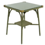 LLOYD LOOM originele late Art Deco-bijzettafel in gevlochten riet met groene lak en gedateerd “juli 1952” – 71 x 61 x 61 cm
