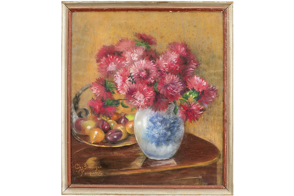 FONTEYNE – POUPAERT CHRISTINE (1897 – 1968) twee pastels : “Bloemstilleven” – 66 x 57 en 66 x 68 getekend