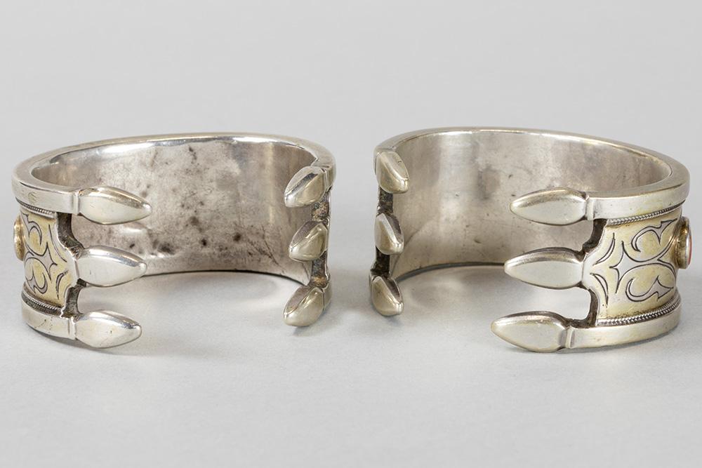 Twee antieke Turkmeense armbanden in zilver bezet met karneolen – gewicht : 204 gram
