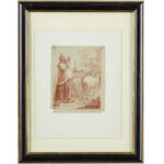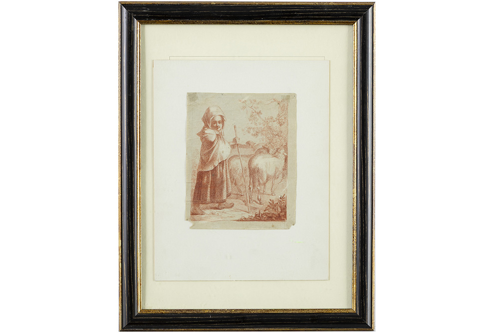 Vroeg negentiende eeuwse sanguine : “Herderin met schapen” – 18,5 x 15