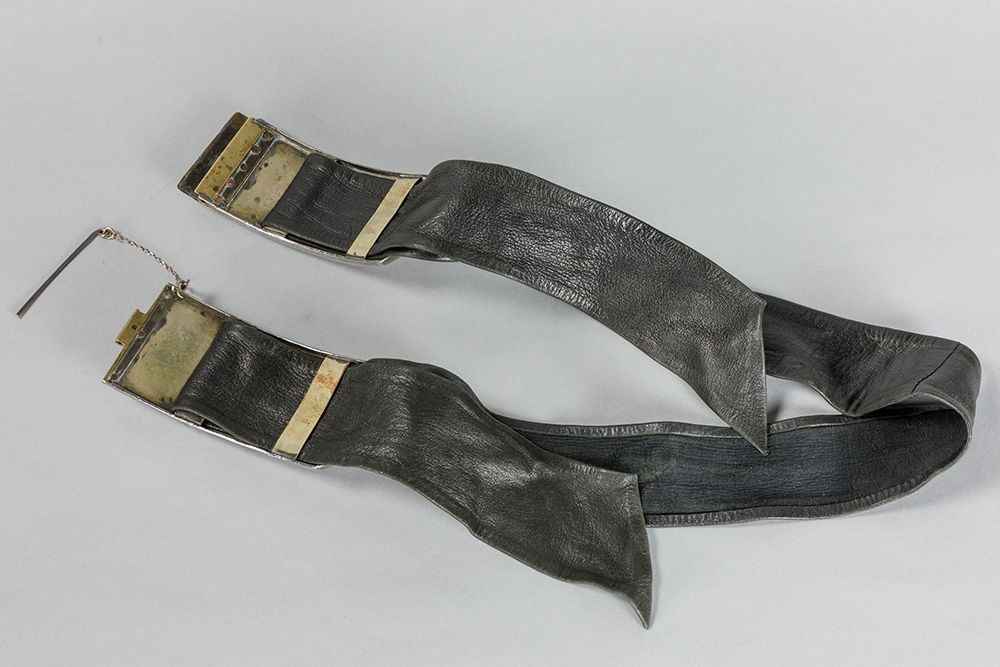 Lederen gordel met twee gespen in zilver, eigenlijk “Khanger”-sieraden van de Berbers