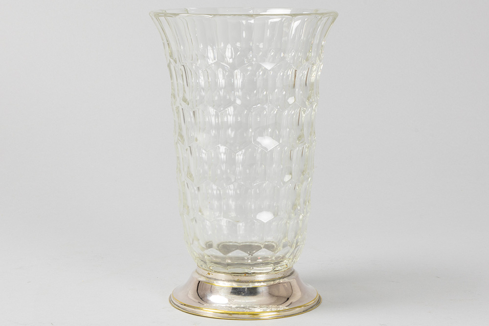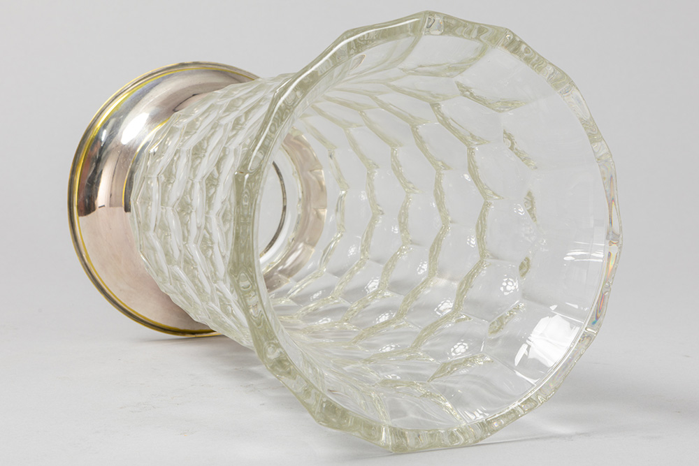 Belgian Delheid signed vase in crystal VSL with marked silver base