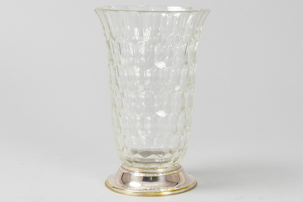 DELHEID vaas in kristal Val-St-Lambert met een voet in gemerkt massief zilver – hoogte : 23 cm getekend
